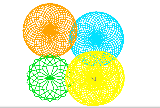 We also furthered our work by changing the pen size and pen colour to create more visual shapes and spirals by using procedures and rotating shapes slightly to complete a full circle.